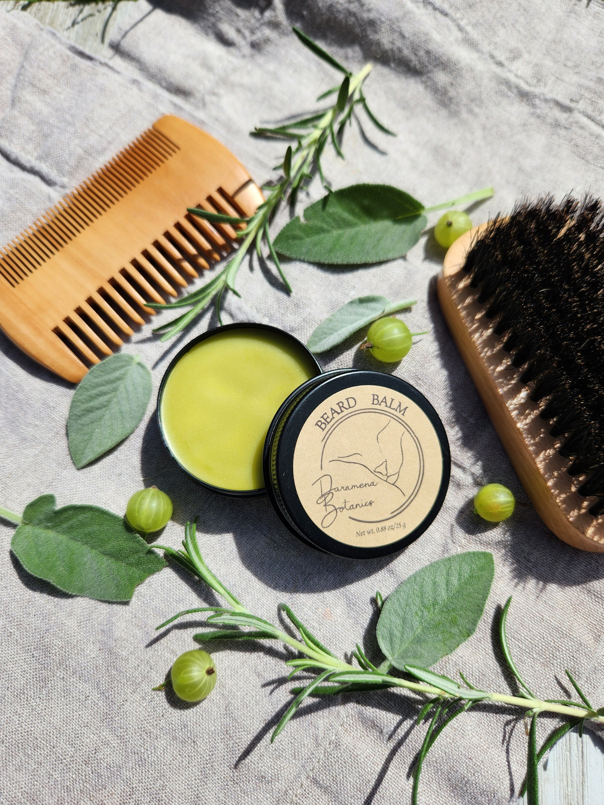 This balm will help you regain control over your unruly beard. Our beard balm is rich in botanical extracts that nourish hair, stimulate hair growth, add shine, don't clog pores, prevent split ends, and flyways. With a light, fresh woody scent, from a special eo blend, this balm is suitable for the most sensitive skin and nose!