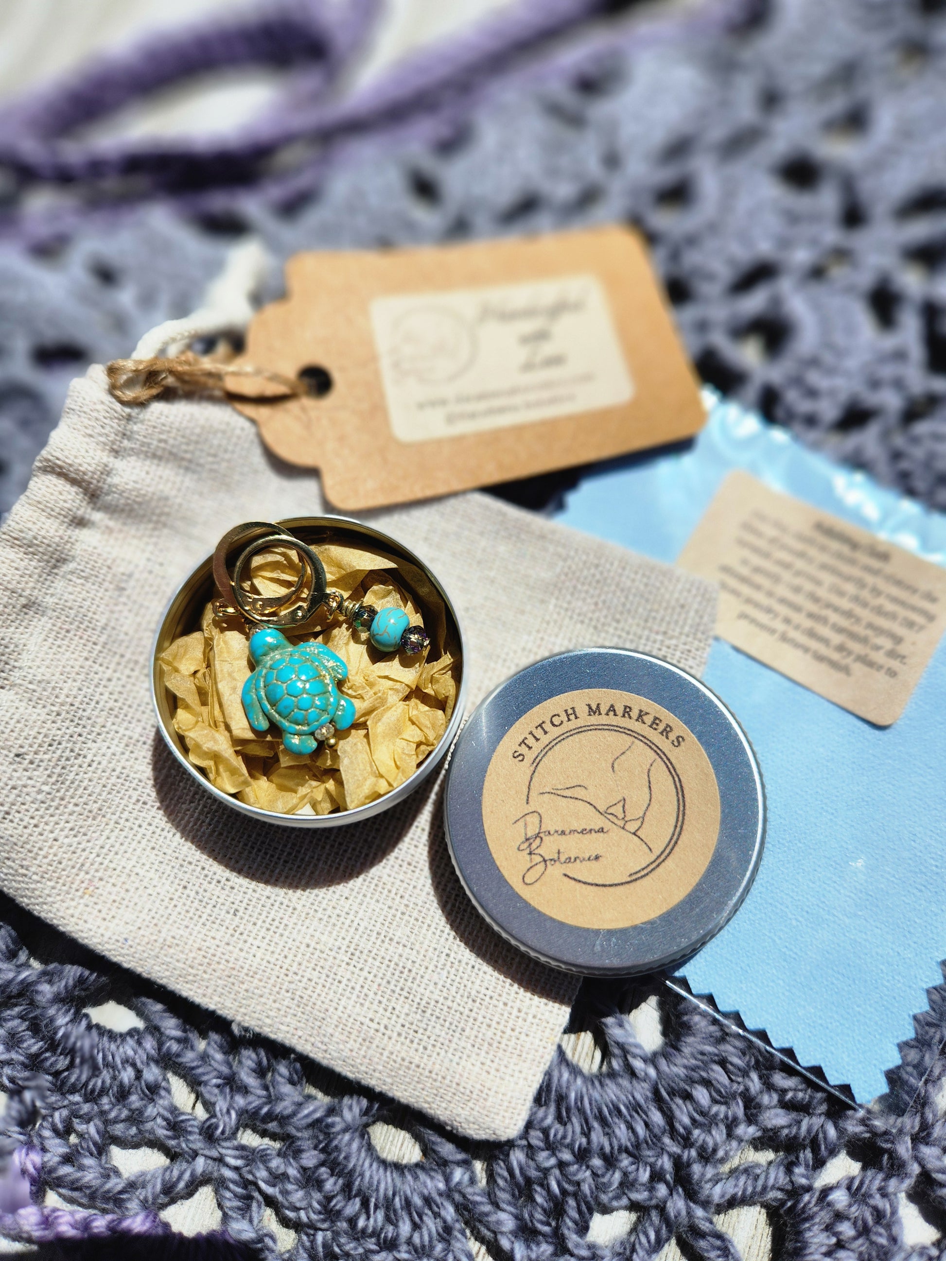 Our handmade Stitch Markers are the perfect addition to your crochet or knitting tools. These versatile stitch markers come with charming designs and make an ideal gift for crocheters, knitters, and as a special surprise for anyone who loves crafting. Keep them safe in the included tin jar and cloth bag, perfect for gifting.