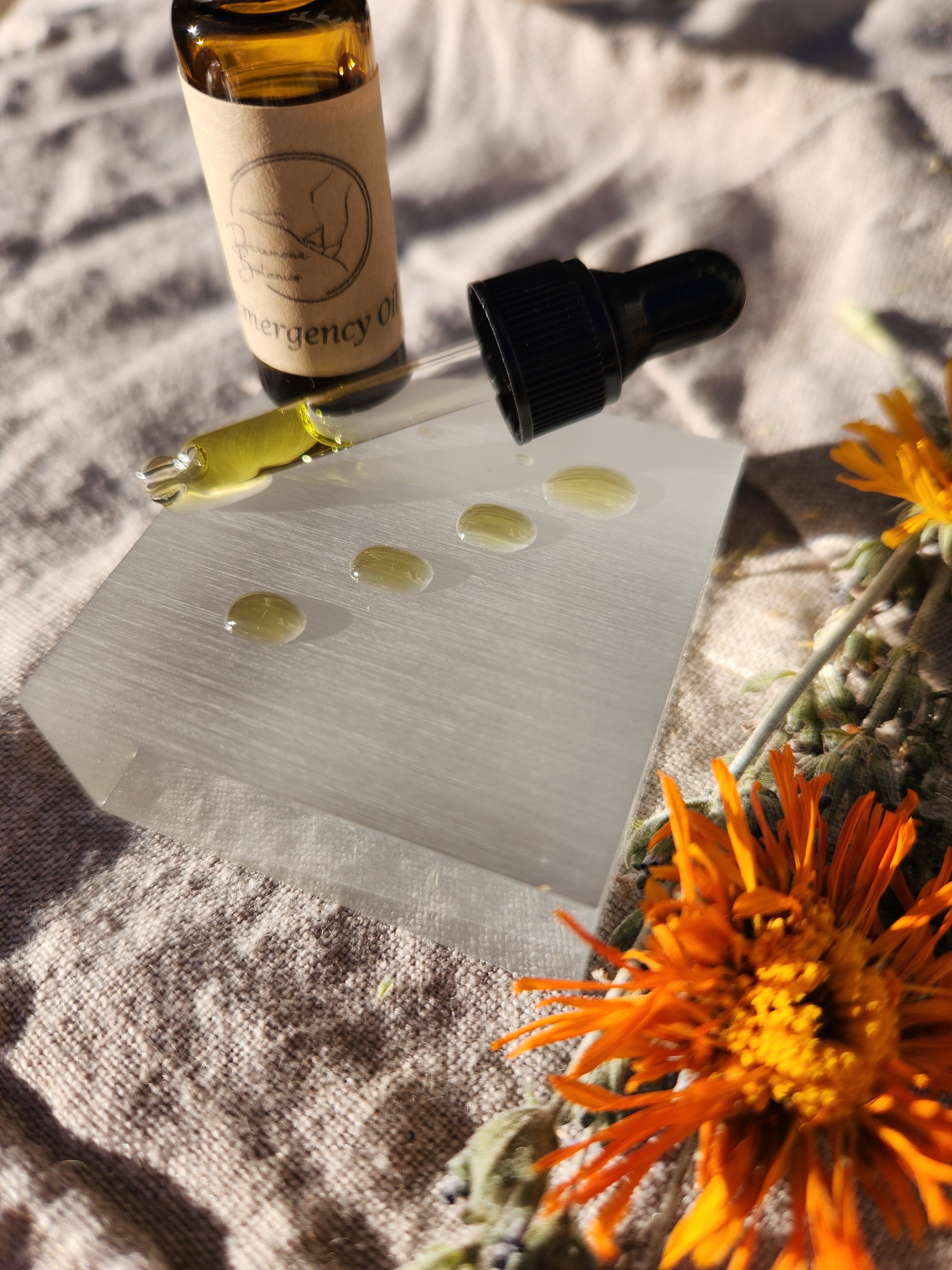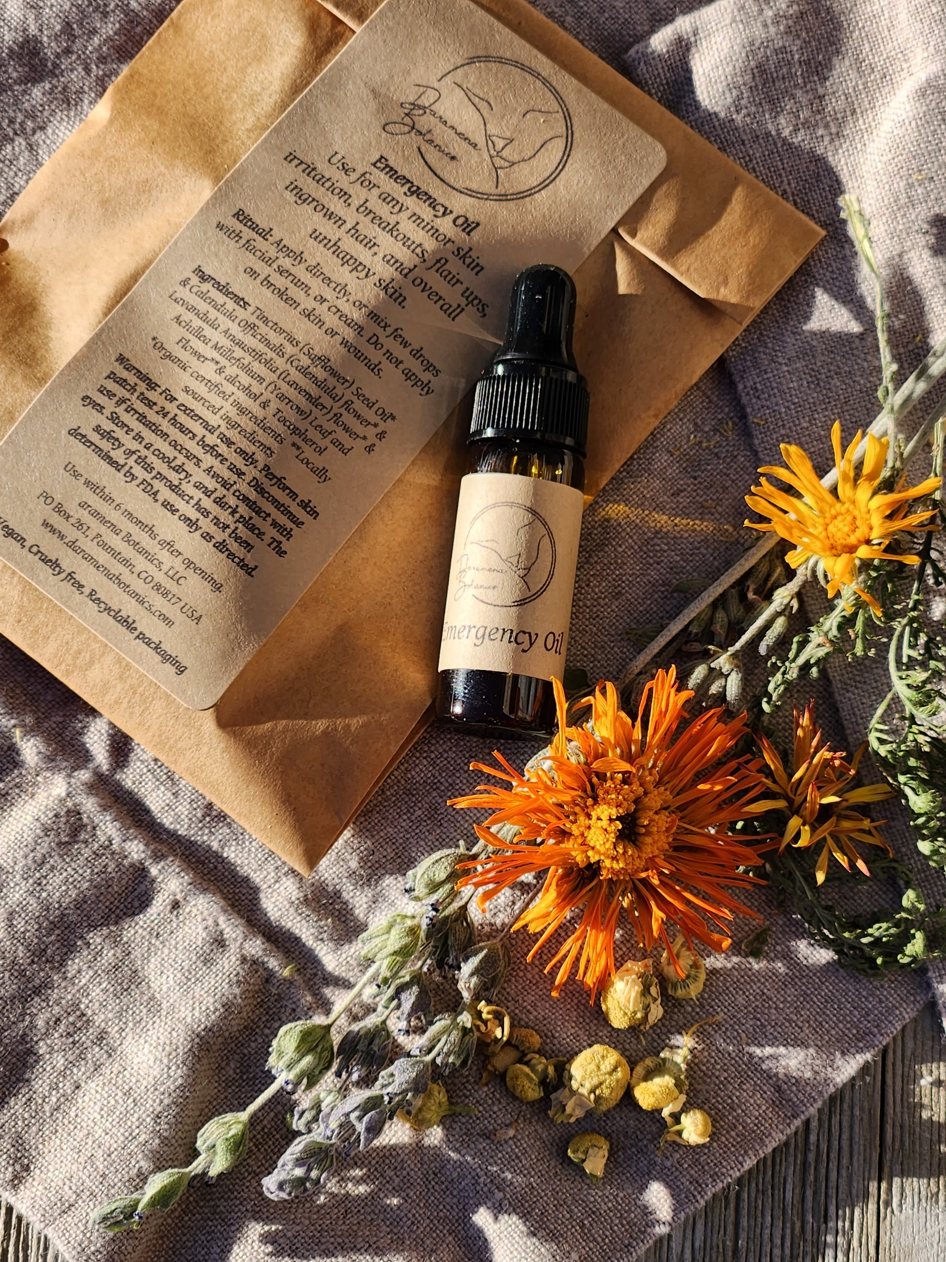 Created by herbal infusion in oil. Safflower oil is rich in linoleic acid, and vitamins D, K, and E. Provides anti-inflammatory and moisturizing benefits. This oil is gentle and light. Safflower oil absorbs into the skin well and does not clog pores. Infused with locally sourced Yarrow, also rich in anti-inflammatory properties, as well as it is astringent and antiseptic. Wonderful for acne-prone skin. Calendula doesn’t need much introductions, since her reputation is well known. It is a strong wound healer, gentle enough that it can be used to calm newborns' diaper rash. Lavender is also antiseptic and antifungal, providing a calming effect to irritated skin. Chamomile soothes redness, acne, and eczema.